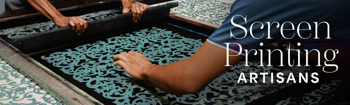 Pouring just the right amount of seaweed-based screen printing ink onto the silk screen.