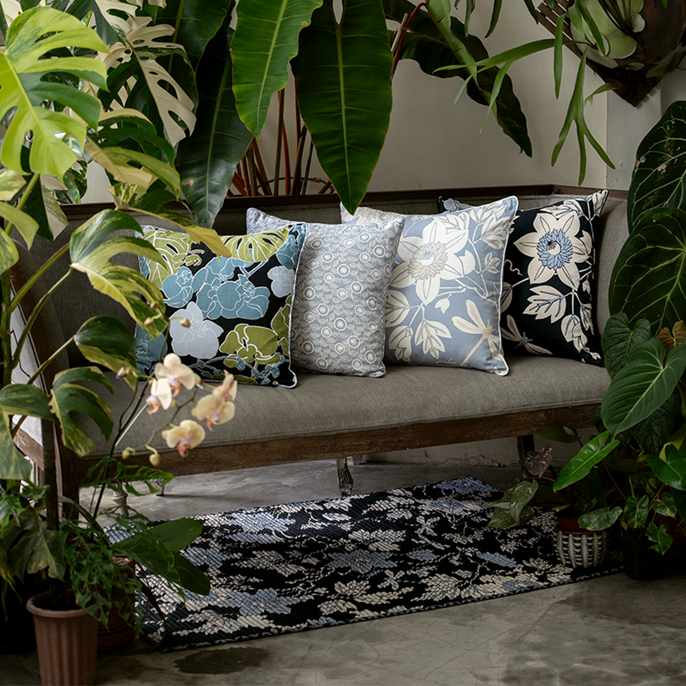 Our unique channel stitched, rope quilted cotton carpets and mats are just great and feel super on bare feet too. The small mats are fully reversible with three coordinating fabrics on one side and a single fabric on the other. Made in our fair trade workshop in Bali, they can be machine washed gentle and tumble dried with low heat.