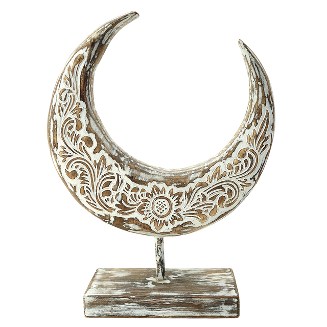 Hiasan Bulan Ukir dengan Cat Putih