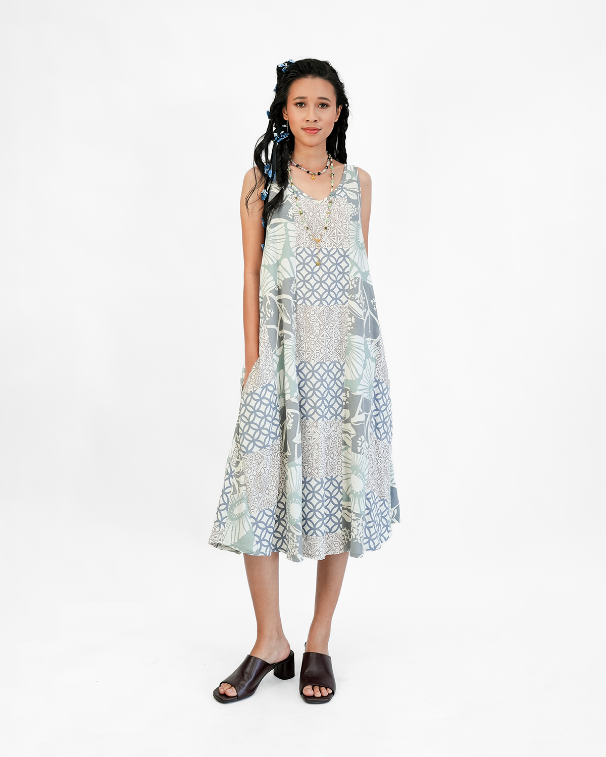 Gaun tank top berkerah V ini sederhana, elegan, dan menawan dengan jatuhnya yang indah. Terbuat dari rayon mewah bersertifikasi berkelanjutan, dengan ketebalan dan kelembutan yang memungkinkan jatuhnya kain yang indah. Dibuat dengan prinsip perdagangan adil di bengkel kami di Bali menggunakan rayon yang lembut dan mewah, dicetak dengan tinta berbasis rumput laut ramah lingkungan dengan motif khas kami. Andrea mendesain setiap pakaian kami yang santai dan serbaguna agar menjadi bagian dari lemari pakaian klasik, abadi, dan minimalis.