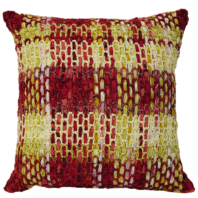 Sarung bantal cantik ini, yang dirancang oleh Balizen, adalah aksen hangat, boho, dan buatan tangan yang sempurna. Sarung bantal ini dirajut di koperasi wanita di Bali barat, kemudian ditenun dengan potongan-potongan kain Rayon bermotif khas kami, dan dijahit dengan teliti di bengkel perdagangan adil kami sendiri di Bali. Cuci dengan tangan atau mesin cuci menggunakan kantong khusus pakaian dalam (untuk melindungi tekstil buatan tangan) dengan air dingin, lalu keringkan dengan cara diletakkan mendatar.