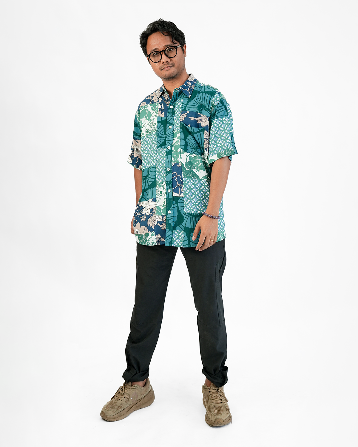 Kemeja Lengan Pendek Pria Motif Patchwork, 4 Ukuran