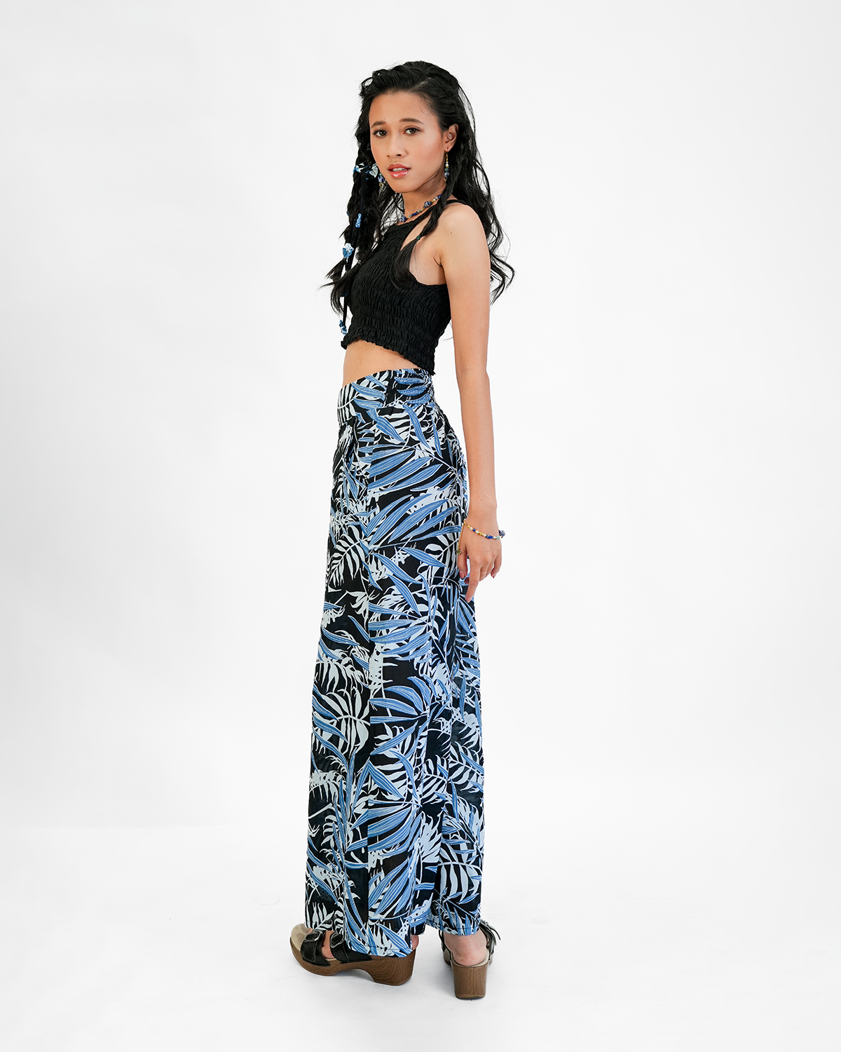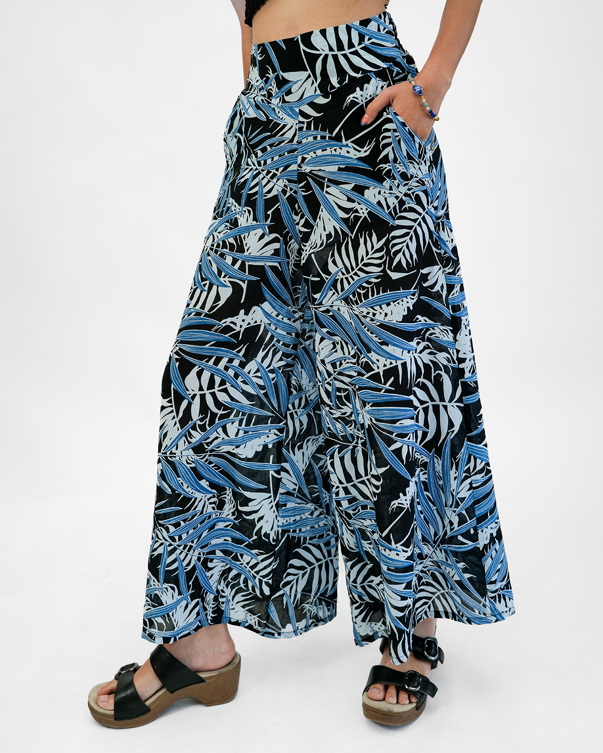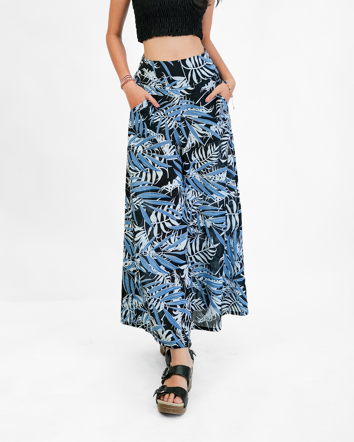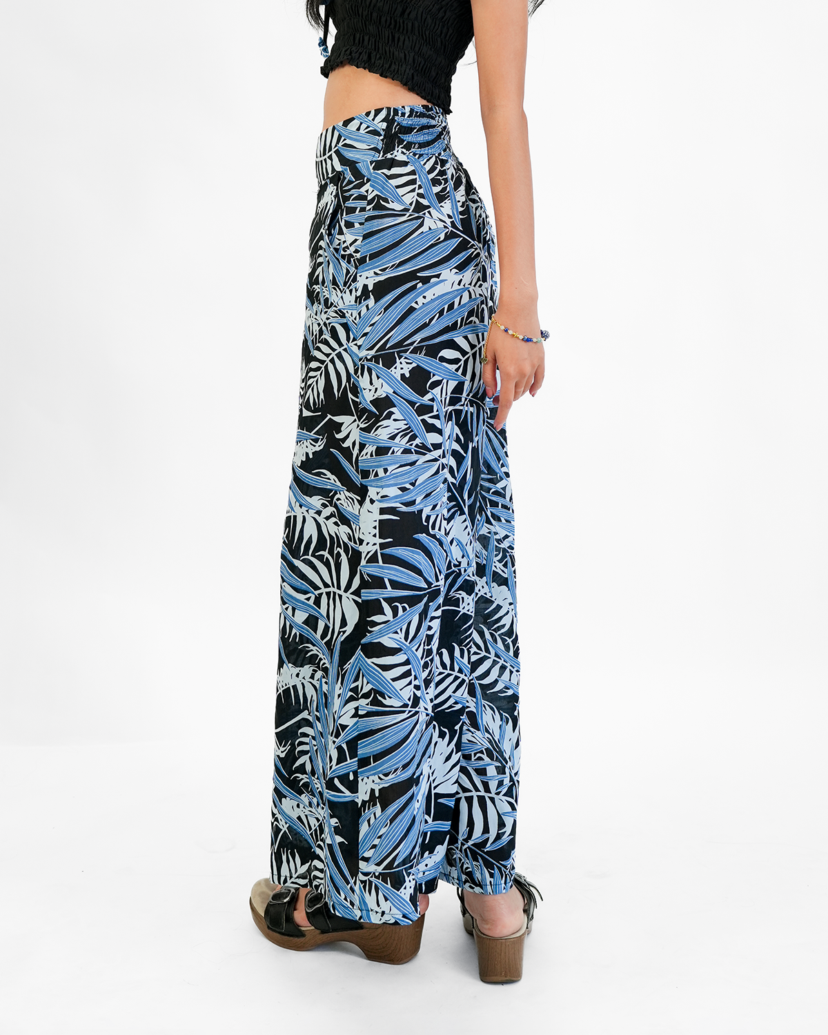 Celana Panjang Tencel Piazza Warna Biru Palm Hitam dengan Detail Kerut, 2 Ukuran - S (ukuran perempuan 2-6)