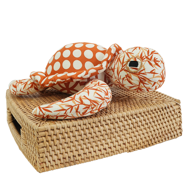 Hewan-hewan tambal sulam yang menggemaskan ini dibuat dengan kain katun Balizen prima print asli kami, yang disablon tangan dengan pewarna ramah lingkungan berbahan dasar rumput laut. Isinya berupa kapas dan/atau bahan pengisi steril daur ulang dari sisa benang pabrik. Mata mereka dihias dan disulam satu per satu, sehingga setiap kura-kura memiliki kepribadian yang sedikit berbeda. Sebagai bagian dari lini produk kami yang unik, produk ini memanfaatkan sisa-sisa kain kami dalam upaya mencapai nol limbah pabrik. Produk ini dibuat dengan penuh perhatian di bengkel internal kami yang berprinsip perdagangan adil di Bali.