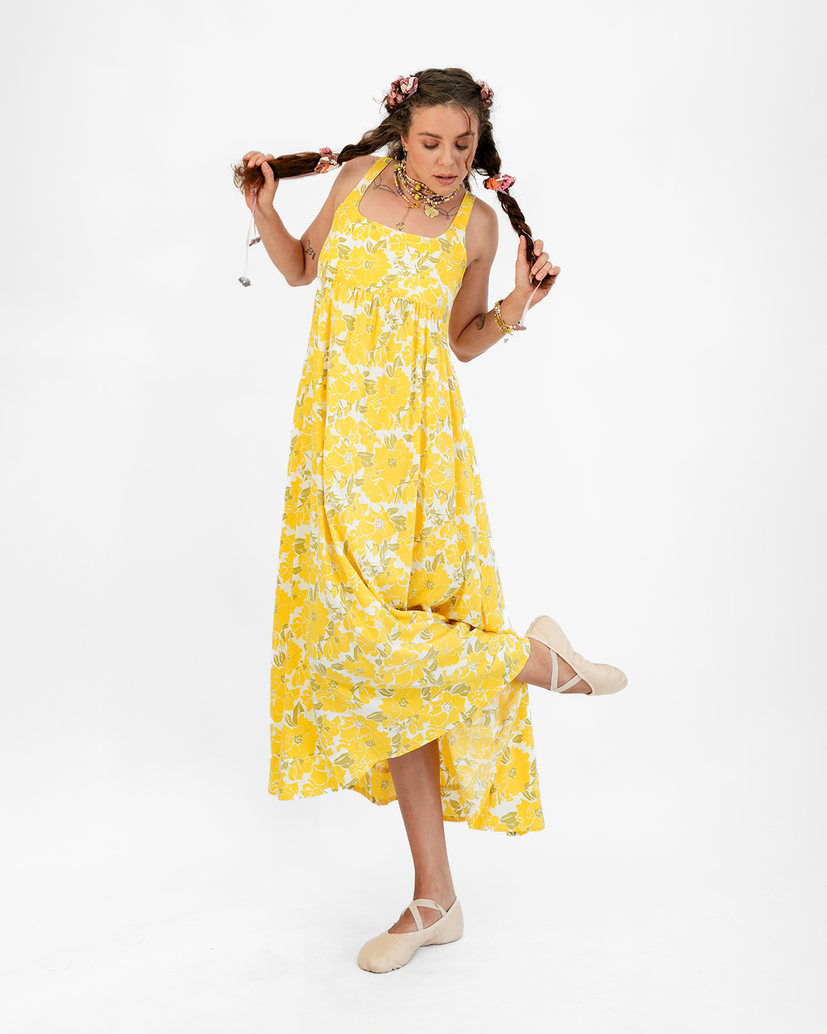 Gaun cantik ini, terbuat dari rayon mewah, sangat cocok untuk dikenakan di atas baju renang, untuk berbelanja, atau makan malam. Dengan roknya yang lebar dan mengalir, Anda bisa melakukan gerakan balet, dan gaun ini juga memiliki saku. Gaun ini disablon tangan dengan salah satu motif Balizen orisinal kami yang terinspirasi dari alam menggunakan pewarna ramah lingkungan berbahan dasar rumput laut, dan dibuat dengan penuh perhatian di bengkel internal kami yang berprinsip perdagangan adil di Bali. Cuci dengan tangan atau mesin cuci dingin, keringkan dengan mesin pengering suhu rendah atau jemur. Andrea mendesain setiap pakaian kami yang santai dan serbaguna agar menjadi bagian dari lemari pakaian klasik, abadi, dan minimalis.
