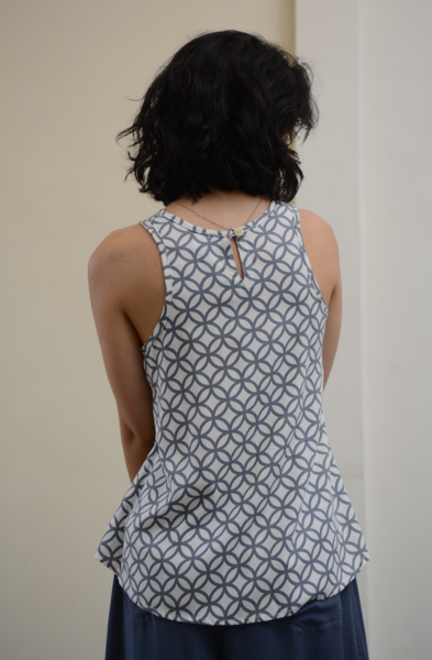 Perdagangan adil dibuat di bengkel kami di Bali, dengan bahan rayon yang lembut dan mewah, dibuat dengan cetakan khas kami menggunakan tinta ramah lingkungan berbahan dasar rumput laut, dan kancing batok kelapa di tengkuk.