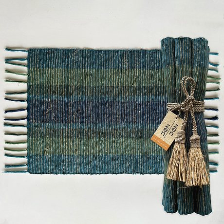 Rp310.000Harga satuan /Tidak tersediaAlas Piring Motif Garis Indigo Vetiver, Set isi 6