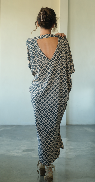 Gaun Kaftan Retro Indigo Rings, 1 ukuran